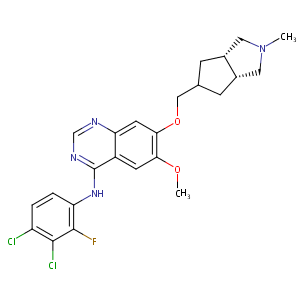 InChI=1S/C24H25Cl2FN4O2/c1-31-9-14-5-13(6-15(14)10-31)11-33-21-8-19-16(7-20(21)32-2)24(29-12-28-19)30-18-4-3-17(25)22(26)23(18)27/h3-4,7-8,12-15H,5-6,9-11H2,1-2H3,(H,28,29,30)/t13?,14-,15+