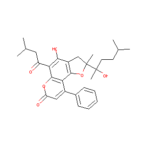 CC(C)CCC(C)(C1(CC2=C(O1)C3=C(C(=C2O)C(=O)CC(C)C)OC(=O)C<br />=C3C4=CC=CC=C4)C)O