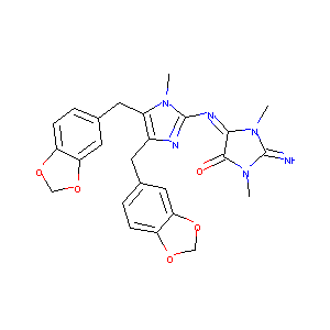 CN1C(=C(N=C1N=C2C(=O)N(C(=N)N2C)C)CC3=CC4=C(C=C3)OCO4)C<br />C5=CC6=C(C=C5)OCO6