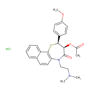 CC(=O)OC1C(SC2=C(C=CC3=CC=CC=C32)N(C1=O)CCN(C)C)C4=CC=C<br />(C=C4)OC.Cl