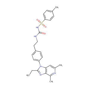 InChI=1S/C26H29N5O3S/c1-5-24-29-25-19(4)28-18(3)16-23(25)31(24)21-10-8-20(9-11-21)14-15-27-26(32)30-35(33,34)22-12-6-17(2)7-13-22/h6-13,16H,5,14-15H2,1-4H3,(H2,27,30,32)