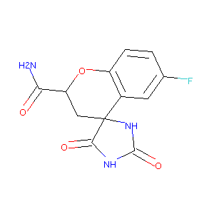 1S/C12H10FN3O4/c13-5-1-2-7-6(3-5)12(4-8(20-7)9(14)17)10(18)15-11(19)16-12/h1-3,8H,4H2,(H2,14,17)(H2,15,16,18,19)/t8-,12+/m1/s1