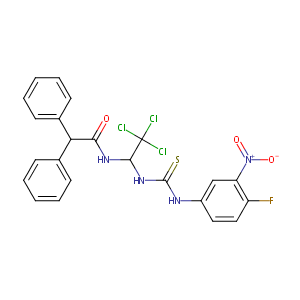 InChI=1S/C23H18Cl3FN4O3S/c24-23(25,26)21(30-22(35)28-16-11-12-17(27)18(13-16)31(33)34)29-20(32)19(14-7-3-1-4-8-14)15-9-5-2-6-10-15/h1-13,19,21H,(H,29,32)(H2,28,30,35)