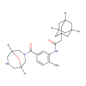 InChI=1S/C26H35N3O3/c1-16-2-3-20(25(31)29-14-21-12-27-13-22(15-29)32-21)7-23(16)28-24(30)11-26-8-17-4-18(9-26)6-19(5-17)10-26/h2-3,7,17-19,21-22,27H,4-6,8-15H2,1H3,(H,28,30)