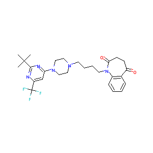 CC(C)(C)C1=NC(=CC(=N1)N2CCN(CC2)CCCCN3C(=O)CCC(=O)C4=CC<br />=CC=C43)C(F)(F)F