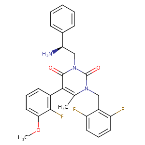 InChI=1S/C27H24F3N3O3/c1-16-24(18-10-6-13-23(36-2)25(18)30)26(34)33(15-22(31)17-8-4-3-5-9-17)27(35)32(16)14-19-20(28)11-7-12-21(19)29/h3-13,22H,14-15,31H2,1-2H3/t22-/m0/s1
