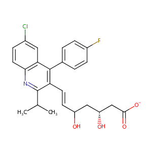 InChI=1S/C25H25ClFNO4/c1-14(2)25-20(9-8-18(29)12-19(30)13-23(31)32)24(15-3-6-17(27)7-4-15)21-11-16(26)5-10-22(21)28-25/h3-11,14,18-19,29-30H,12-13H2,1-2H3,(H,31,32)/p-1/b9-8+/t18?,19-/m1/s1