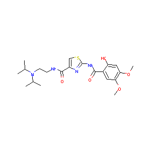 CC(C)N(CCNC(=O)C1=CSC(=N1)NC(=O)C2=CC(=C(C=C2O)OC)OC)C(<br />C)C