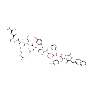 InChI=1S/C72H95ClN14O14/c1-41(2)32-54(64(93)80-53(17-10-11-30-77-42(3)4)72(101)87-31-13-18-60(87)69(98)78-43(5)63(75)92)81-68(97)58(38-62(74)91)84-70(99)61(37-46-22-27-52(90)28-23-46)86(7)71(100)59(40-88)85-67(96)57(36-48-14-12-29-76-39-48)83-66(95)56(34-45-20-25-51(73)26-21-45)82-65(94)55(79-44(6)89)35-47-19-24-49-15-8-9-16-50(49)33-47/h8-9,12,14-16,19-29,33,39,41-43,53-61,77,88,90H,10-11,13,17-18,30-32,34-38,40H2,1-7H3,(H2,74,91)(H2,75,92)(H,78,98)(H,79,89)(H,80,93)(H,81,97)(H,82,94)(H,83,95)(H,84,99)(H,85,96)/t43-,53+,54+,55-,56-,57-,58-,59+,60+,61+/m1/s1