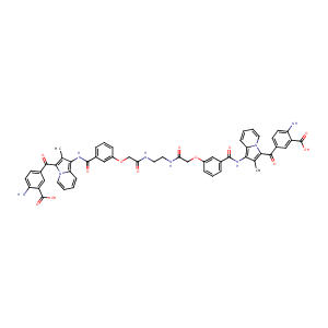C(=O)(c1ccc(c(c1)C(=O)O)N)c1c(c(c2ccccn12)NC(=O)c1cc(OC<br />C(=O)NCCNC(=O)COc2cccc(C(=O)Nc3c(c(C(=O)c4ccc(c(c4)C(=O<br />)O)N)n4ccccc34)C)c2)ccc1)C