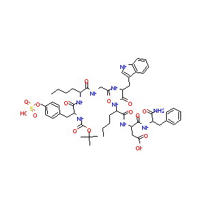 CCCCC(C(=O)NCC(=O)NC(CC1=CNC2=CC=CC=C21)C(=O)NC(CCCC)C(<br />=O)NC(CC(=O)O)C(=O)NC(CC3=CC=CC=C3)C(=O)N)NC(=O)C(CC4=C<br />C=C(C=C4)OS(=O)(=O)O)NC(=O)OC(C)(C)C