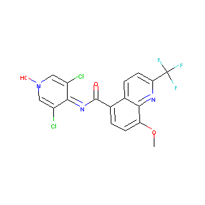 COC1=C2C(=C(C=C1)C(=O)N=C3C(=CN(C=C3Cl)O)Cl)C=CC(=N2)C(<br />F)(F)F