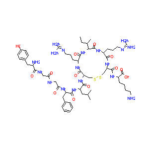 CCC(C)C1C(=O)NC(C(=O)NC(CSSCC(C(=O)NC(C(=O)N1)CCCN=C(N)<br />N)NC(=O)C(CC(C)C)NC(=O)C(CC2=CC=CC=C2)NC(=O)CNC(=O)CNC(<br />=O)C(CC3=CC=C(C=C3)O)N)C(=O)NC(CCCCN)C(=O)O)CCCN=C(N)N