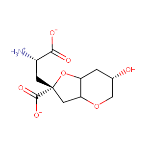 InChI=1S/C11H17NO7/c12-6(9(14)15)2-11(10(16)17)3-8-7(19-11)1-5(13)4-18-8/h5-8,13H,1-4,12H2,(H,14,15)(H,16,17)/p-1/t5-,6-,7?,8?,11+/m0/s1