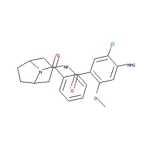 COC1=CC(=C(C=C1C(=O)NC2CC3CCC(C2)N3C(=O)C4=CC=CC=C4)Cl)<br />N