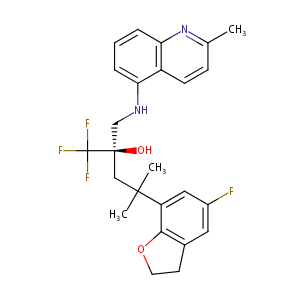 InChI=1S/C24H23F3N2O5/c1-13-17-11-15(7-8-16(17)20(30)34-29-13)28-21(31)23(32,24(25,26)27)12-22(2,3)18-6-4-5-14-9-10-33-19(14)18/h4-8,11,32H,9-10,12H2,1-3H3,(H,28,31)