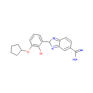 C1CCC(C1)OC2=CC=CC(=C2[O-])C3[NH+]=C4C=CC(=CC4=N3)C(=[N<br />H2+])N