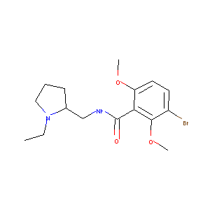 Remoxiprida; Remoxipridum; Romoxipride; A 33547; FLA 731; A-33547; FLA-731; Remoxiprida [INN-Spanish]; Remoxipride (USAN); Remoxipridum [INN-Latin]; Remoxipride [USAN:BAN:INN]; (-)-(S)-3-Brom-N-((1-ethyl-2-pyrrolidinyl)methyl)-2,6-dimethoxybenzamid; (-)-(S)-3-Bromo-N-((1-ethyl-2-pyrrolidinyl)methyl)-2,6-dimethoxybenzamide; (-)-n-ethyl-2-(3-bromo-2,6-dimethoxybenzamidomethyl)pyrrolidine; (S)-3-Bromo-2,6-dimethoxy-N-((1-ethyl-2-pyrrolidinyl)methyl)benzamide; (S)-3-Bromo-N-((1-ethyl-2-pyrrolidinyl)methyl)-2,6-dimethoxybenzamide; 3-bromo-N-[[(2S)-1-ethylpyrrolidin-2-yl]methyl]-2,6-dimethoxybenzamide