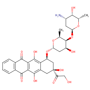c12c(C(=O)c3c(C1=O)cccc3)c(c1c(c2O)C[C@](C[C@@H]1O[C@@H<br />]1O[C@H]([C@H]([C@H](C1)O)O[C@@H]1O[C@H]([C@H]([C@H](C1<br />)N)O)C)C)(C(=O)CO)O)O