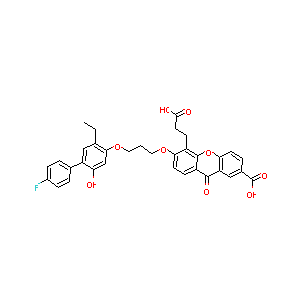 CCC1=C(C=C(C(=C1)C2=CC=C(C=C2)F)O)OCCCOC3=C(C4=C(C=C3)C<br />(=O)C5=C(O4)C=CC(=C5)C(=O)O)CCC(=O)O
