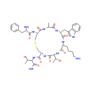 CC1C(=O)NC(C(=O)NC(C(=O)NC(C(=O)NC(CSSCC(C(=O)N1)NC(=O)<br />C(CC2=CC=CC=C2)N)C(=O)NC(C(C)O)C(=O)N)C(C)O)CCCCN)CC3=C<br />NC4=CC=CC=C43