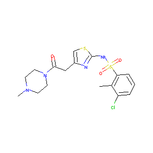 CC1=C(C=CC=C1Cl)S(=O)(=O)NC2=NC(=CS2)CC(=O)N3CCN(CC3)C.<br />Cl