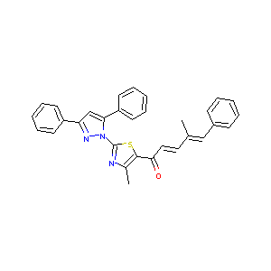 CC1=C(SC(=N1)N2C(=CC(=N2)C3=CC=CC=C3)C4=CC=CC=C4)C(=O)C<br />=CC(=CC5=CC=CC=C5)C