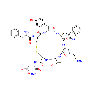 CC(C)C1C(=O)NC(CSSCC(C(=O)NC(C(=O)NC(C(=O)NC(C(=O)N1)CC<br />CCN)CC2=CNC3=CC=CC=C32)CC4=CC=C(C=C4)O)NC(=O)C(CC5=CC=C<br />C=C5)N)C(=O)NC(CC(=O)O)C(=O)N