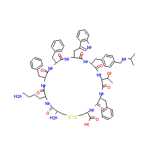 CC(C)NCC1=CC=C(C=C1)CC2C(=O)NC(C(=O)NC(C(=O)NC(CSSCC(C(<br />=O)NC(C(=O)NC(C(=O)NC(C(=O)NC(C(=O)N2)CC3=CNC4=CC=CC=C4<br />3)CC5=CC=CC=C5)CC6=CC=CC=C6)CCCCN)N)C(=O)O)CC7=CC=CC=C7<br />)C(C)O