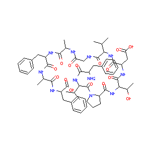 CC(C)C(C(=O)NCC(=O)NC(C)C(=O)NC(CC1=CC=CC=C1)C(=O)NC(C)<br />C(=O)NC(CC2=CC=CC=C2)C(=O)O)NC(=O)C(CC(=O)O)NC(=O)C(C(C<br />)O)NC(=O)C3CCCN3C(=O)C(C(C)C)NC(=O)C(CC4=CC=CC=C4)N
