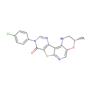 InChI=1S/C18H13ClN4O2S/c1-9-6-20-14-12(25-9)7-21-17-13(14)15-16(26-17)18(24)23(8-22-15)11-4-2-10(19)3-5-11/h2-5,7-9,20H,6H2,1H3/t9-/m0/s1