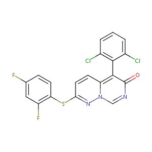 VX745, VX-745; 5-(2,6-Dichlorophenyl)-2-((2,4-difluorophenyl)thio)-6H-pyrimido(1,6-b)pyridazin-6-one; 5-(2,6-dichlorophenyl)-2-(2,4-difluorophenyl)sulfanylpyrimido[1,6-b]pyridazin-6-one