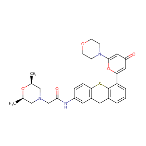 InChI=1S/C30H33N3O5S/c1-19-16-32(17-20(2)37-19)18-28(35)31-23-6-7-27-22(13-23)12-21-4-3-5-25(30(21)39-27)26-14-24(34)15-29(38-26)33-8-10-36-11-9-33/h3-7,13-15,19-20H,8-12,16-18H2,1-2H3,(H,31,35)/t19-,20+