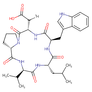 InChI=1S/C31H42N6O7/c1-16(2)12-21-27(40)33-22(13-18-15-32-20-9-6-5-8-19(18)20)28(41)35-23(14-25(38)39)31(44)37-11-7-10-24(37)29(42)36-26(17(3)4)30(43)34-21/h5-6,8-9,15-17,21-24,26,32H,7,10-14H2,1-4H3,(H,33,40)(H,34,43)(H,35,41)(H,36,42)(H,38,39)/t21-,22+,23-,24-,26+/m0/s1/i14T/t14?,21-,22+,23-,24-,26+