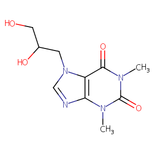 Aristophyllin; Asthmolysin; Astmamasit; Astrophyllin; Circain; Circair; Coronal; Coronarin; Corphyllin; Dihydroxypropyltheophylline; Diprofilina; Diprofillin; Diprofillina; Diprofilline; Diprophyllin; Diprophylline; Diprophyllinum; Dipropylline; Droxine; Dyflex; Glyfyllin; Glyphyllin; Glyphylline; Glyphyllinum; Hidroxiteofillina; Hiphyllin; Hyphylline; Iphyllin; Isophyllen; Liactemin; Lufyllin; Neophyl; Neophyllin; Neophylline; Neostenovasan; Neothylline; Neotilina; Neufil; Neutrafil; Neutrafillina; Neutraphyllin; Neutraphylline; Neutroxantina; Propyphyllin; Protheophylline; Purifilin; Silbephyllin; Silbephylline; Solufilin; Solufyllin; Soluphyllin; Synthophylline; Tefilan; Teofen; Tesfen; Theal; Thefylan; Dihydroxypropyl theophylline; Dihydroxypropyl theopylin; Dilor G; Diprofillina [DCIT]; Dyphylline [USAN]; Neophyllin M; Theal ampules; AFI-Phyllin; COR-theophylline; Dihydroxypropyl theopylin (german); Dilor-400; Diphyllin (VAN); Diprofilina [INN-Spanish]; Diprophyllinum [INN-Latin]; Dyphylline (USP); Lufyllin (TN); Neo-Vasophylline; Diprophylline (JAN/INN); Neothylline, Lufyllin, diprophylline,Dyphylline; (+-)-7-(2,3-Dihydroxypropyl)theophylline; (+-)-diprophylline; (+-)-dyphylline; (1,2-Dihydroxy-3-propyl)thiophyllin; 1,3-Dimethyl-7-(2,3-dihydroxypropyl)xanthine; 1H-Purine-2,6-dione, 7-(2,3-dihydroxypropyl)-3,7-dihydro-1,3-dimethyl; 7-(2,3-Dihydroxypropyl)-1,3-dimethyl-3,7-dihydro-1H-purine-2,6-dione; 7-(2,3-Dihydroxypropyl)-1,3-dimethylxanthine; 7-(2,3-Dihydroxypropyl)-3,7-dihydro-1,3-dimethyl-1H-purine-2,6-dione; 7-(2,3-Dihydroxypropyl)theophylline; 7-(2,3-Dioxypropyl)theophylline; 7-(2,3-dihydroxypropyl)-1,3-dimethyl-2,3,6,7-tetrahydro-1H-purine-2,6-dione; 7-(2,3-dihydroxypropyl)-1,3-dimethylpurine-2,6-dione; 7-(beta,gamma-Dihydroxypropyl)theophylline; 7-(beta.,.gamma.-Dihydroxypropyl)theophylline; 7-DIHYDROXYPROPYLTHEOPHYLLINE; 7-[2,3-Dihydroxypropyl]-theophylline