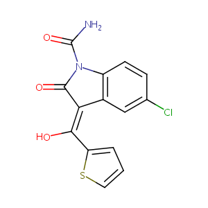 InChI=1S/C14H9ClN2O3S/c15-7-3-4-9-8(6-7)11(13(19)17(9)14(16)20)12(18)10-2-1-5-21-10/h1-6,18H,(H2,16,20)/b12-11-