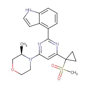 Ref 532224Discovery of 4-{4-[(3R)-3-Methylmorpholin-4-yl]-6-[1-(methylsulfonyl)cyclopropyl]pyrimidin-2-yl}-1H-indole (AZ20): a potent and selective inhibitor of ATR protein kinase with monotherapy in vivo antitumor activity. J Med Chem. 2013 Mar 14;56(5):2125-38.