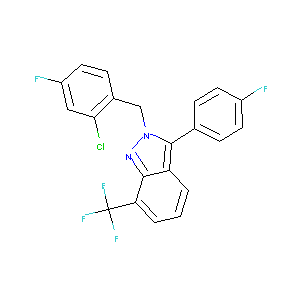 C1=CC2=C(N(N=C2C(=C1)C(F)(F)F)CC3=C(C=C(C=C3)F)Cl)C4=CC<br />=C(C=C4)F