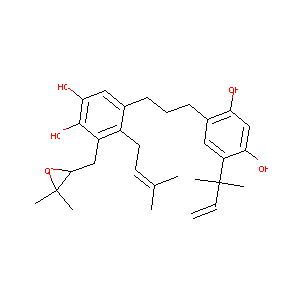 CC(=CCC1=C(C(=C(C=C1CCCC2=CC(=C(C=C2O)O)C(C)(C)C=C)O)O)<br />CC3C(O3)(C)C)C