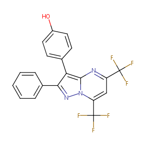 InChI=1S/C20H11F6N3O/c21-19(22,23)14-10-15(20(24,25)26)29-18(27-14)16(11-6-8-13(30)9-7-11)17(28-29)12-4-2-1-3-5-12/h1-10,30H