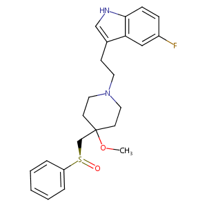 InChI=1S/C23H27FN2O2S/c1-28-23(17-29(27)20-5-3-2-4-6-20)10-13-26(14-11-23)12-9-18-16-25-22-8-7-19(24)15-21(18)22/h2-8,15-16,25H,9-14,17H2,1H3/t29-/m1/s1