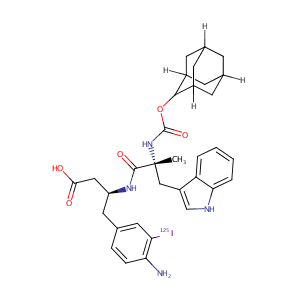 InChI=1S/C33H39IN4O5/c1-33(16-23-17-36-28-5-3-2-4-25(23)28,38-32(42)43-30-21-9-19-8-20(11-21)12-22(30)10-19)31(41)37-24(15-29(39)40)13-18-6-7-27(35)26(34)14-18/h2-7,14,17,19-22,24,30,36H,8-13,15-16,35H2,1H3,(H,37,41)(H,38,42)(H,39,40)/t19?,20?,21?,22?,24-,30?,33+/m0/s1/i34-2
