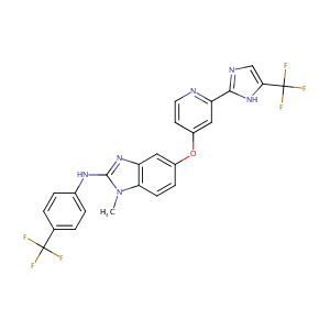 InChI=1S/C24H16F6N6O/c1-36-19-7-6-15(10-17(19)34-22(36)33-14-4-2-13(3-5-14)23(25,26)27)37-16-8-9-31-18(11-16)21-32-12-20(35-21)24(28,29)30/h2-12H,1H3,(H,32,35)(H,33,34)
