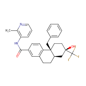 Cc1ncccc1NC(=O)c2ccc3c(CC[C@@H]4C[C@](O)(CC[C@@]34Cc5cc<br />ccc5)C(F)(F)F)c2