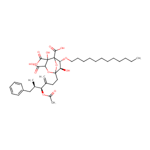 InChI=1S/C37H54O13/c1-5-6-7-8-9-10-11-12-13-17-22-47-30-29(39)35(49-31(32(40)41)36(46,33(42)43)37(30,50-35)34(44)45)21-20-24(2)28(48-26(4)38)25(3)23-27-18-15-14-16-19-27/h14-16,18-19,25,28-31,39,46H,2,5-13,17,20-23H2,1,3-4H3,(H,40,41)(H,42,43)(H,44,45)/t25-,28-,29-,30-,31?,35?,36?,37?/m1/s1