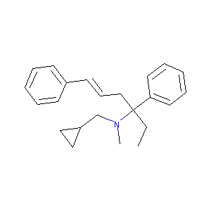 CCC(CC=CC1=CC=CC=C1)(C2=CC=CC=C2)N(C)CC3CC3.Cl