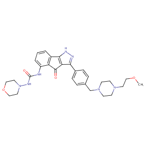 InChI=1S/C29H35N7O4/c1-39-16-13-34-9-11-35(12-10-34)19-20-5-7-21(8-6-20)26-25-27(32-31-26)22-3-2-4-23(24(22)28(25)37)30-29(38)33-36-14-17-40-18-15-36/h2-8H,9-19H2,1H3,(H,31,32)(H2,30,33,38)