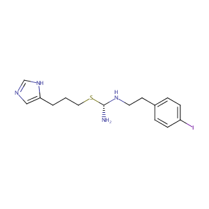 InChI=1S/C15H21IN4S/c16-13-5-3-12(4-6-13)7-8-19-15(17)21-9-1-2-14-10-18-11-20-14/h3-6,10-11,15,19H,1-2,7-9,17H2,(H,18,20)/t15-/m0/s1
