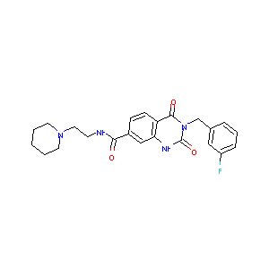 C1CCN(CC1)CCNC(=O)C2=CC3=C(C=C2)C(=O)N(C(=O)N3)CC4=CC(=<br />CC=C4)F