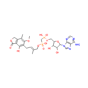 CC1=C(C(=C(C2=C1COC2=O)O)CC=C(C)COP(=O)(CP(=O)(O)OCC3C(<br />C(C(O3)N4C=NC5=C4N=CN=C5N)O)O)O)OC